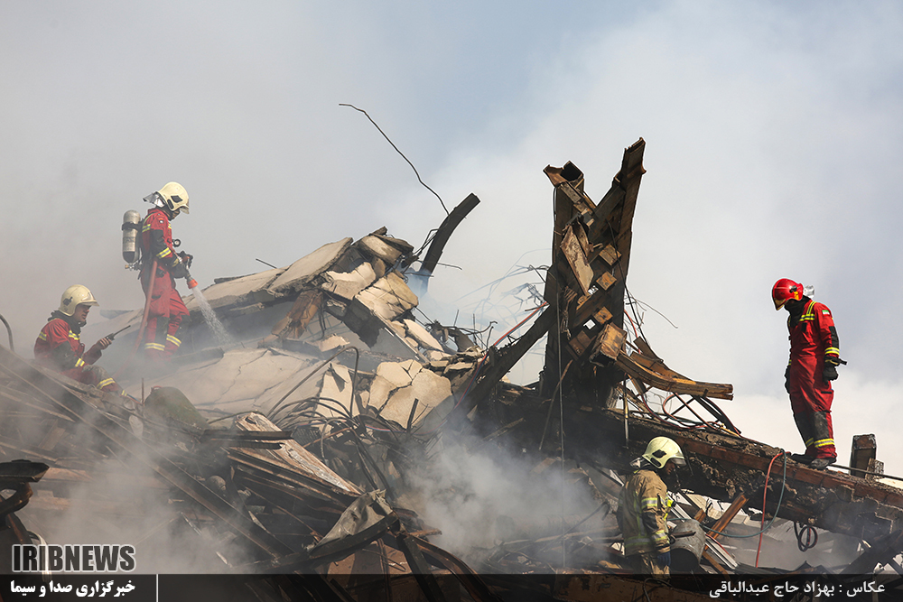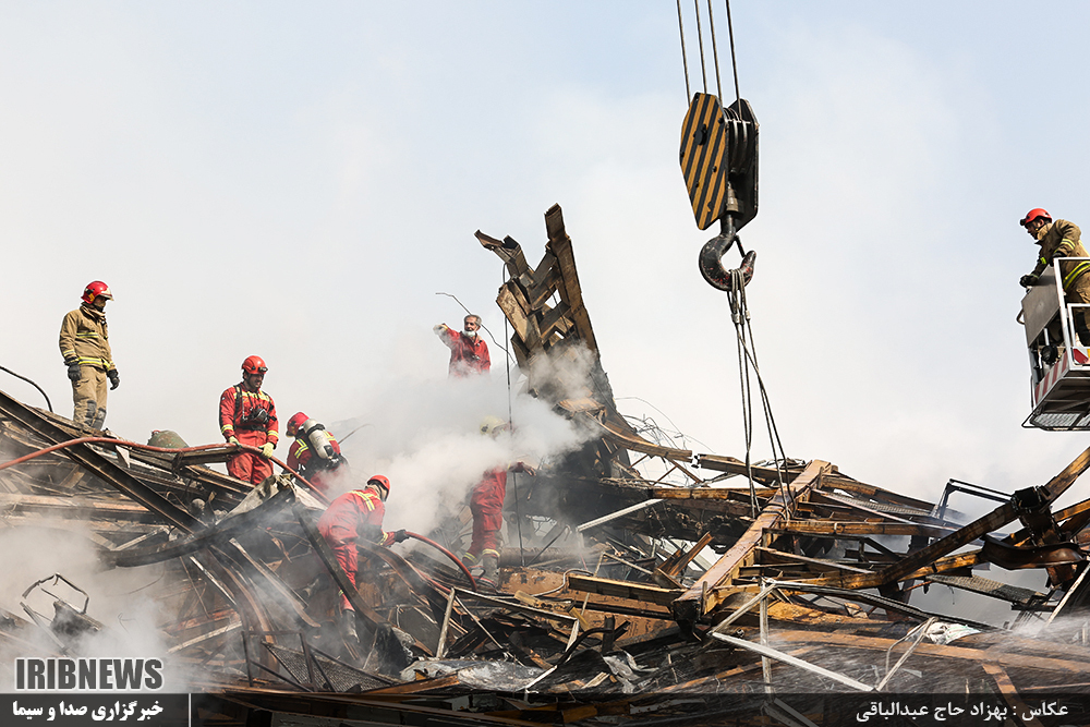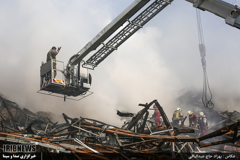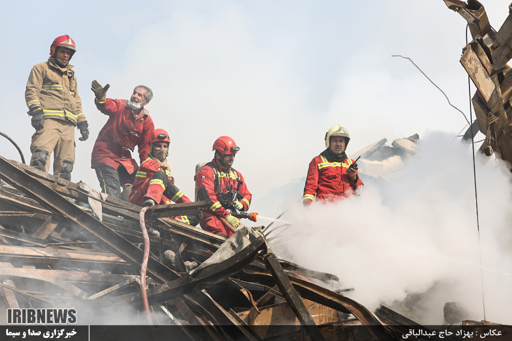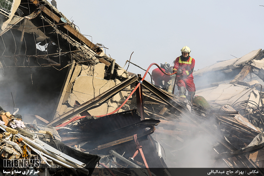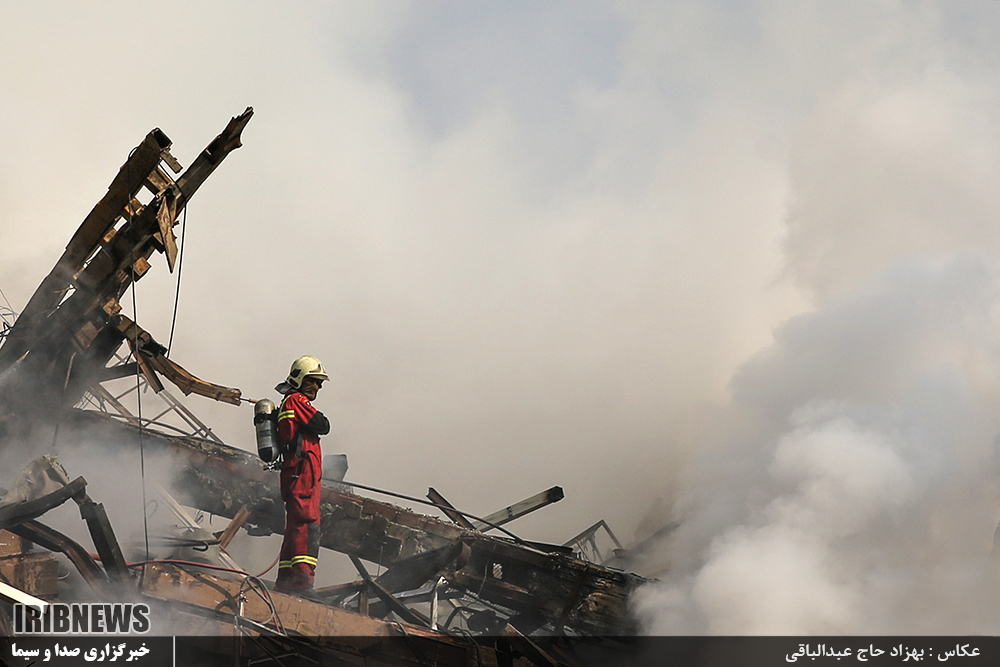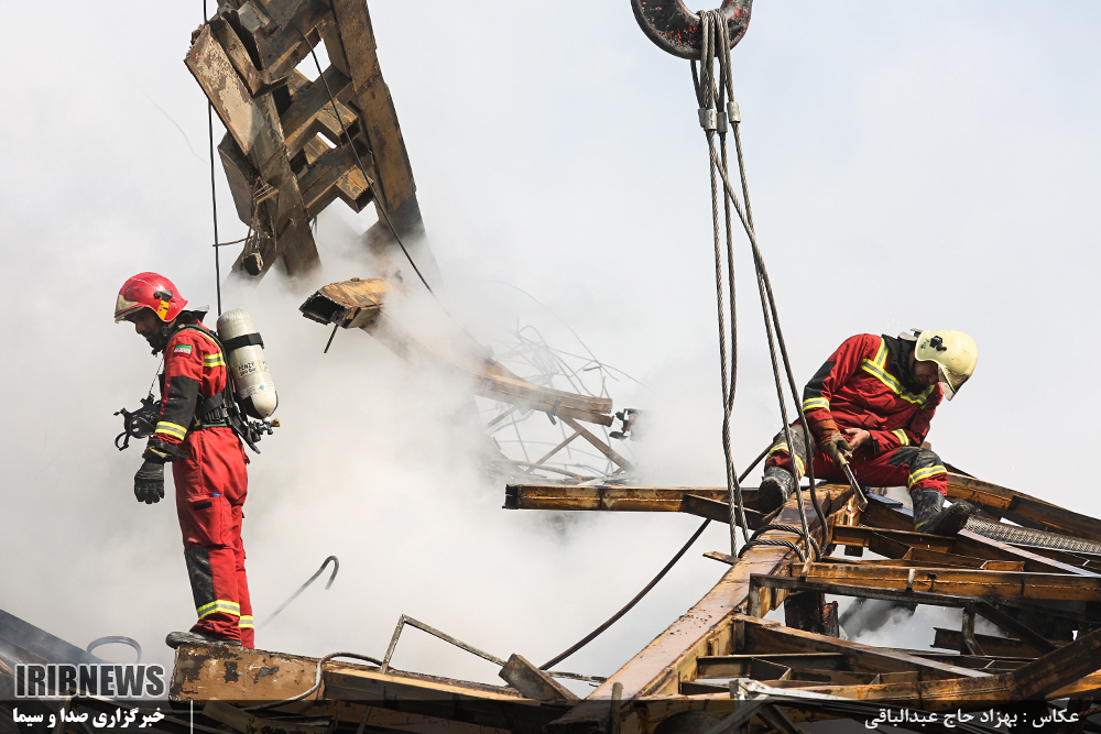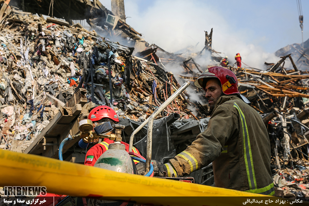 ششمین روز امداد درپلاسکو /پیکری از آتش نشانان پیدا نشد