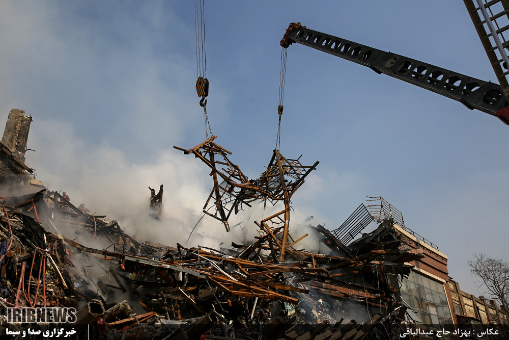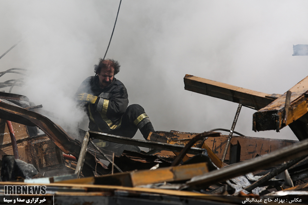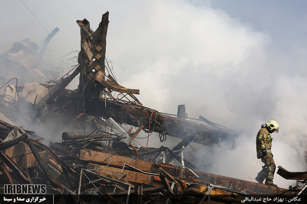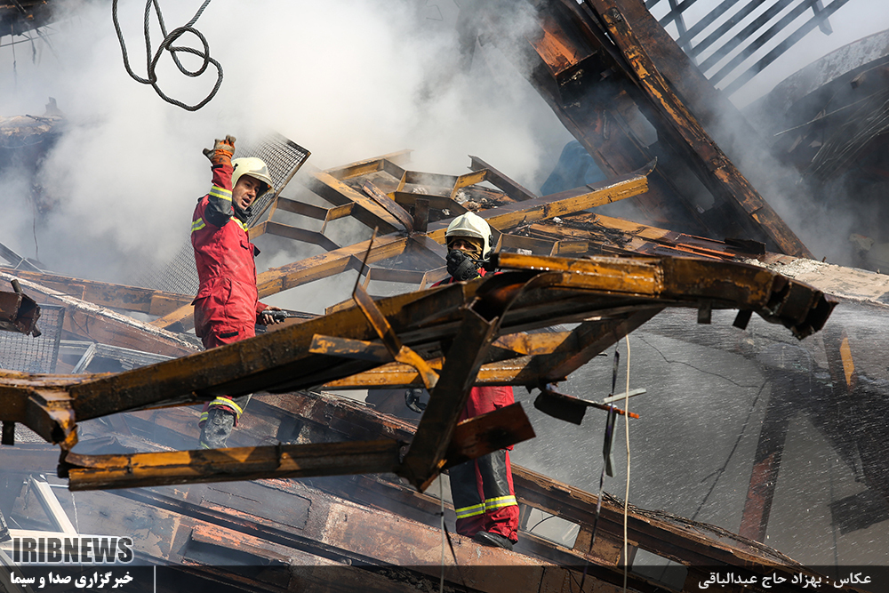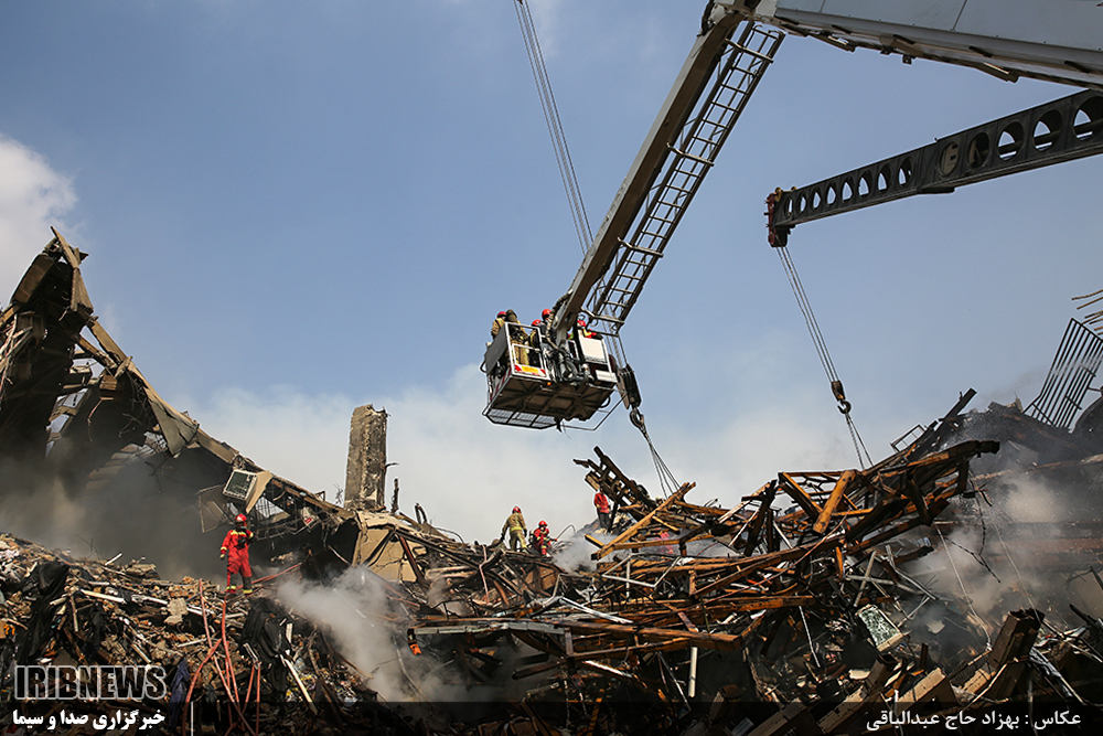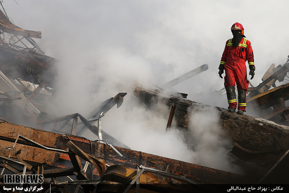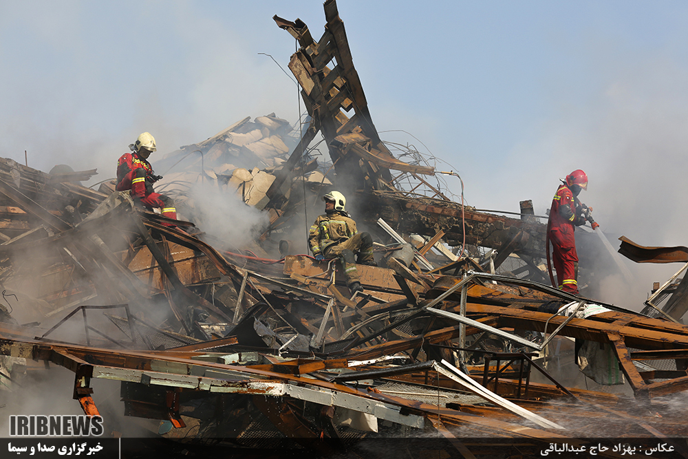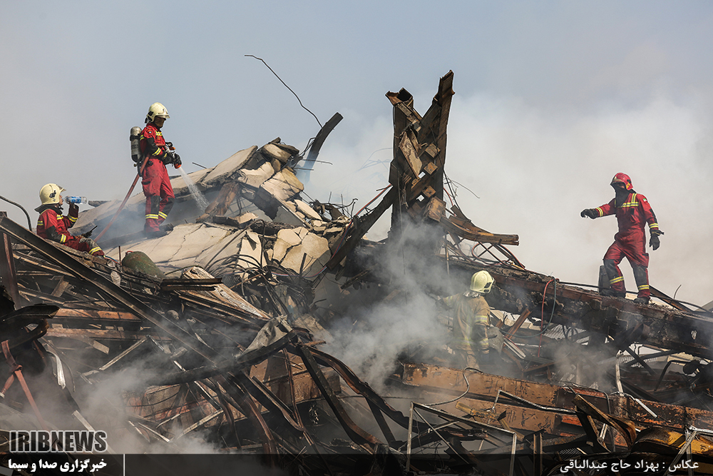 ششمین روز امداد درپلاسکو /پیکری از آتش نشانان پیدا نشد