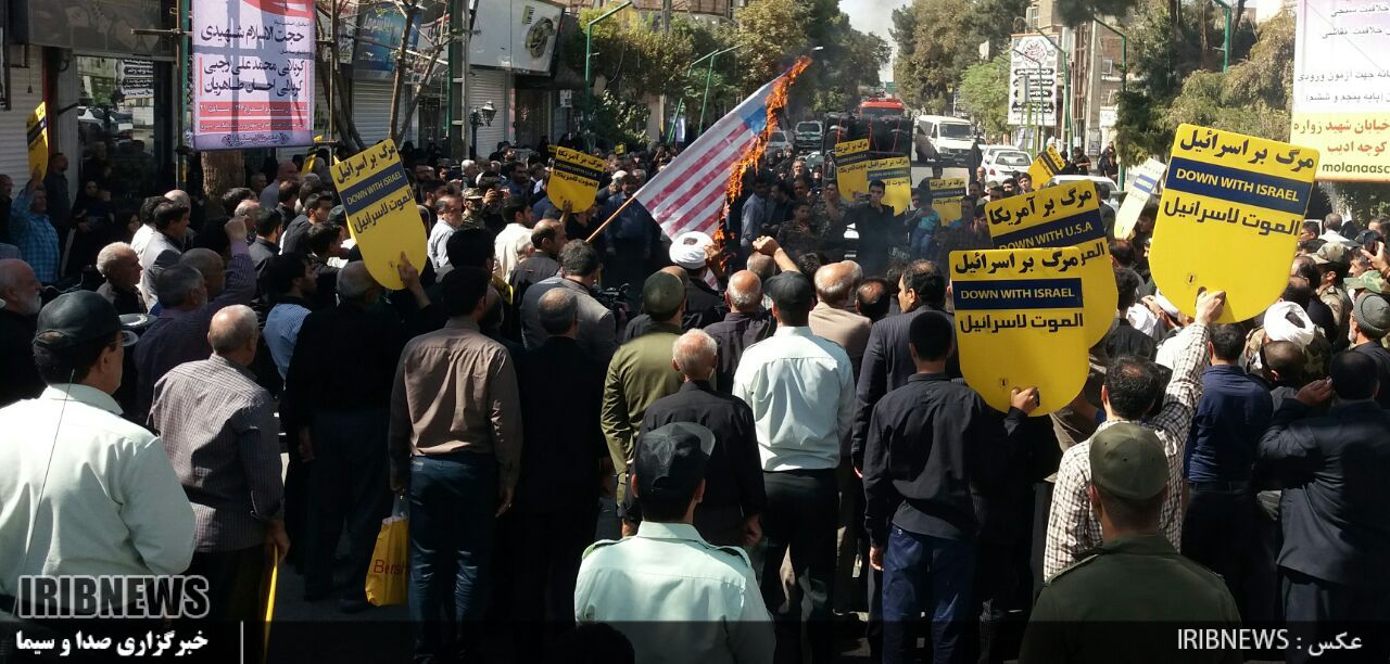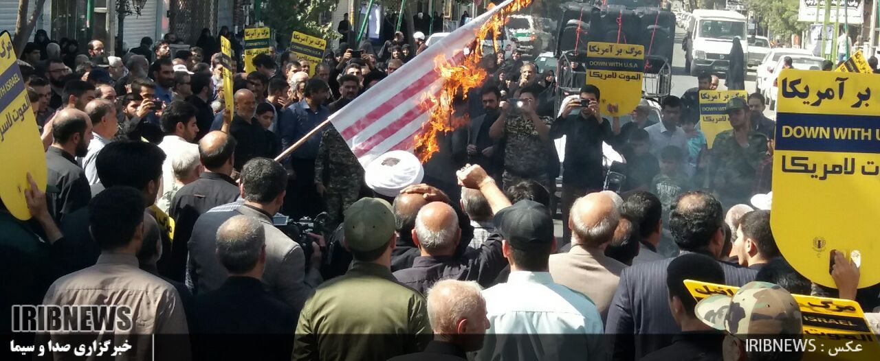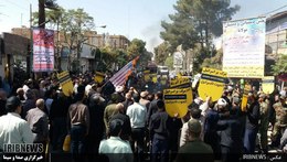 مردم همیشه در صحنه ورامین پس از اقامه نماز جمعه ، برضد سخنان رییس جمهور آمریکا تظاهرات کردند.