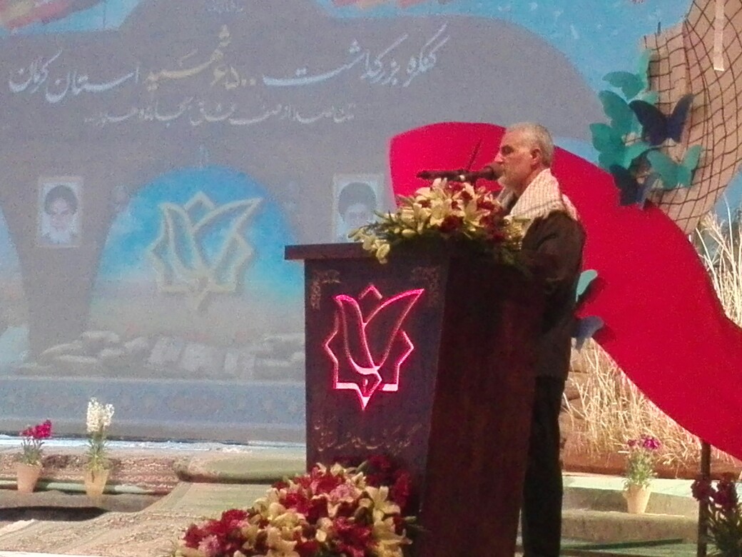 سردار سلیمانی  همچنین با بیان اینکه استان کرمان در ابعاد گوناگونی حتی در بحث دفاع از ولایت چه در دوره امام (ره)‌ و چه در دوره ‌‌امام خامنه‌ای کرمان در پیروی تأثیر تبلیغ این جایگاه نقش مهمی داشت، گفت: نخستین منبری که بحث مرجعیت مقام معظم رهبری را در ابتدای رهبری اعلام کرد منبر کرمان بود.