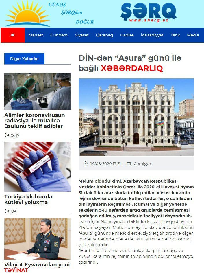 روزنامه یئنی مساوات نوشت: با ابتلای ۱۰۳ نفر دیگر به کرونا تعداد مبتلایان به این ویروس در جمهوری آذربایجان به ۳۴۰۱۸ نفر و با مرگ ۴ نفر دیگر تعداد جانباختهها به ۵۰۴ نفر رسید.