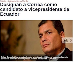رافائل کورئا، ريیس جمهور اسبق اکوادور به عنوان نامزد معاون ریاست جمهوری اکوادور برای انتخابات ۲۰۲۱ معرفی شد.
