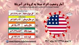 آمریکا به لحاظ ابتلا و موارد مرگ و میر، بالاترین آمار را در جهان به خود اختصاص داده است. در آمریکا ۱۸۷ هزار و ۶۹۶ نفر جان خود را از دست داده اند.