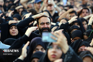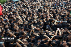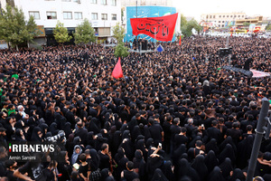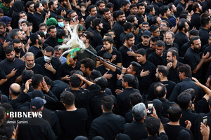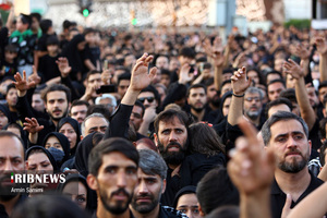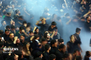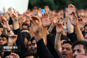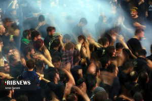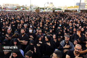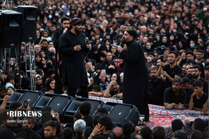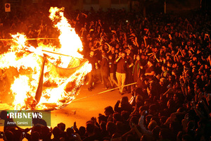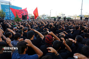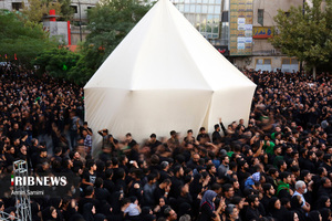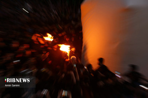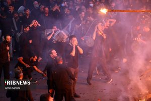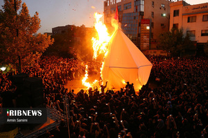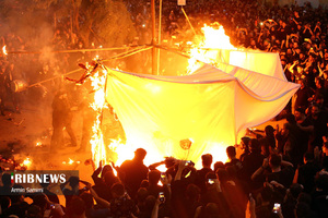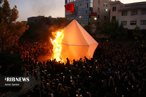 همزمان با عصر دهم محرم، آیین نمادین خیمه سوزان عاشورا در مشهد مقدس برگزارشد.